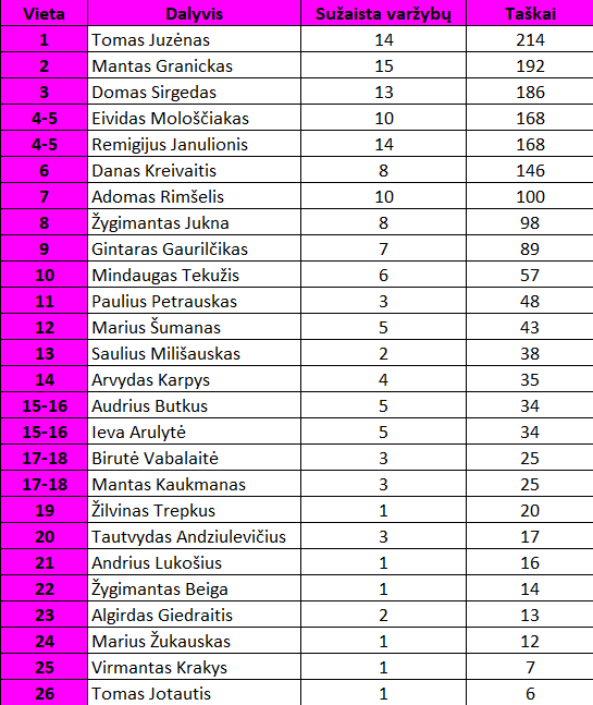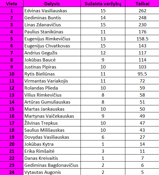 15-ojo turo nugalėtojais tapo Gediminas Buntis ir Eividas Mološčiakas.