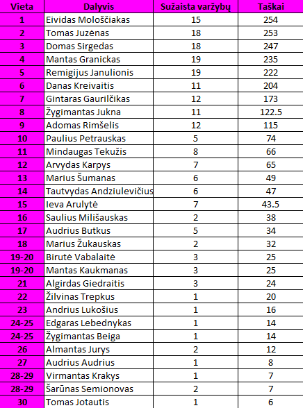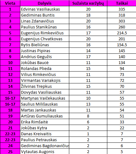 20-ojo turo nugalėtojais tapo Linas Zdanavičius ir Eividas Mološčiakas.
