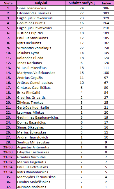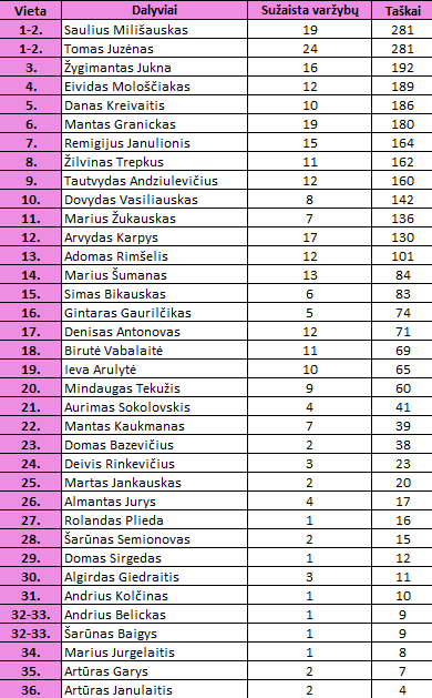 Po 25-ojo turo A lygoje vis dar pirmauja Linas Zdanavičius, tuo tarpu B lygoje – lyderio pozicija dalinasi Saulius Milišauskas ir Tomas Juzėnas. Viskas spręsis paskutiniame vasaros ture rugpjūčio 25 d.