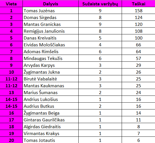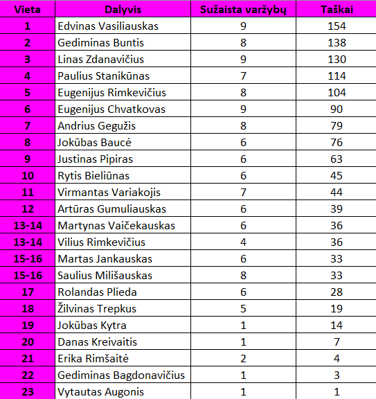 Skvošo B lygos turnyrinė lentelė: